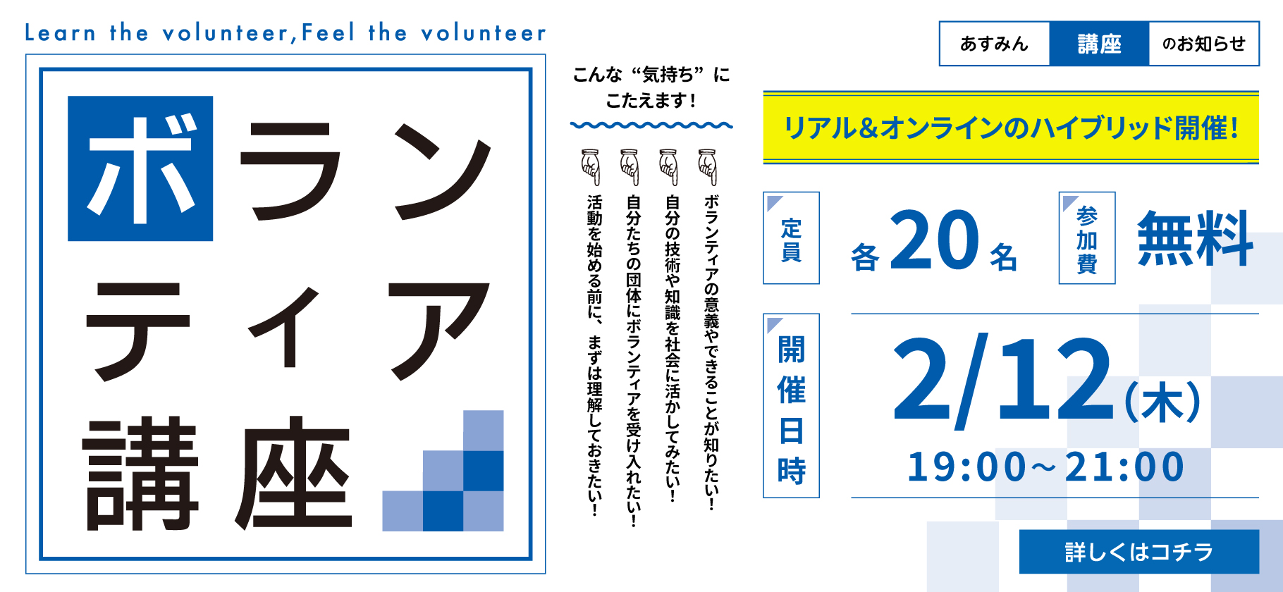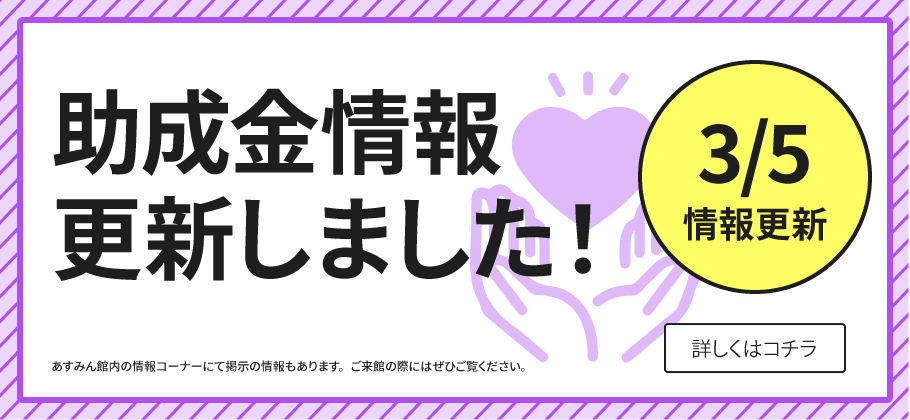 イベント、ボランティア募集は、あすみんへ登録された団体等が自由にお知らせできるコーナーです。