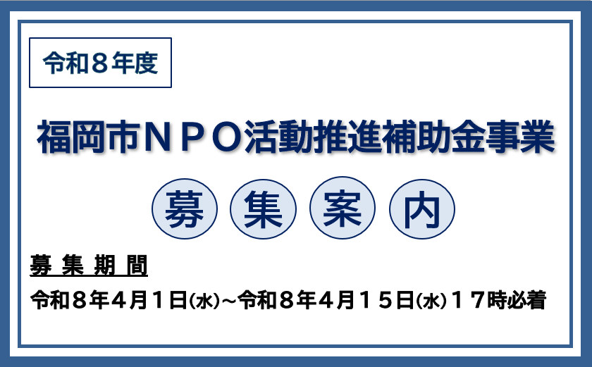 令和8年度福岡市NPO活動推進補助金事業を募集します!