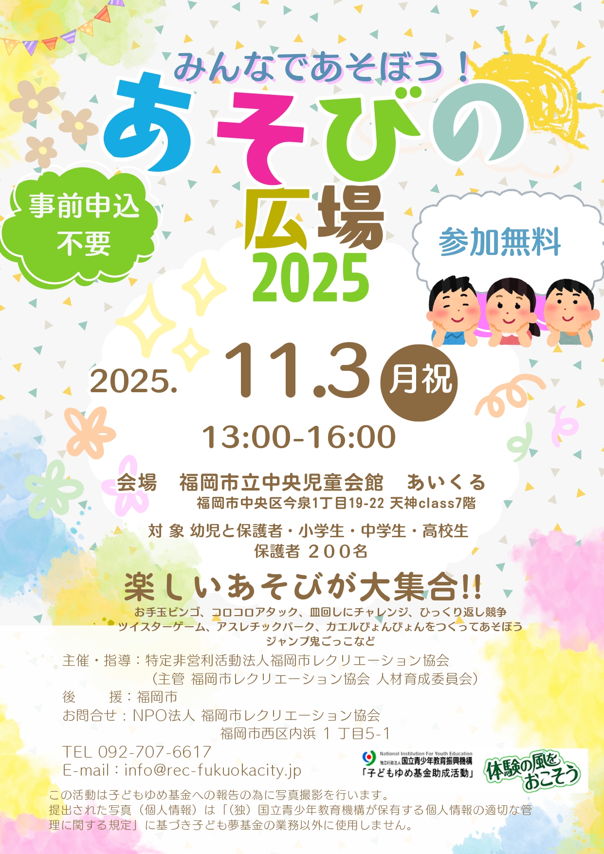 令和7年11月3日(月・祝)に、「みんなであそぼう!あそびの広場2025」を開催します!