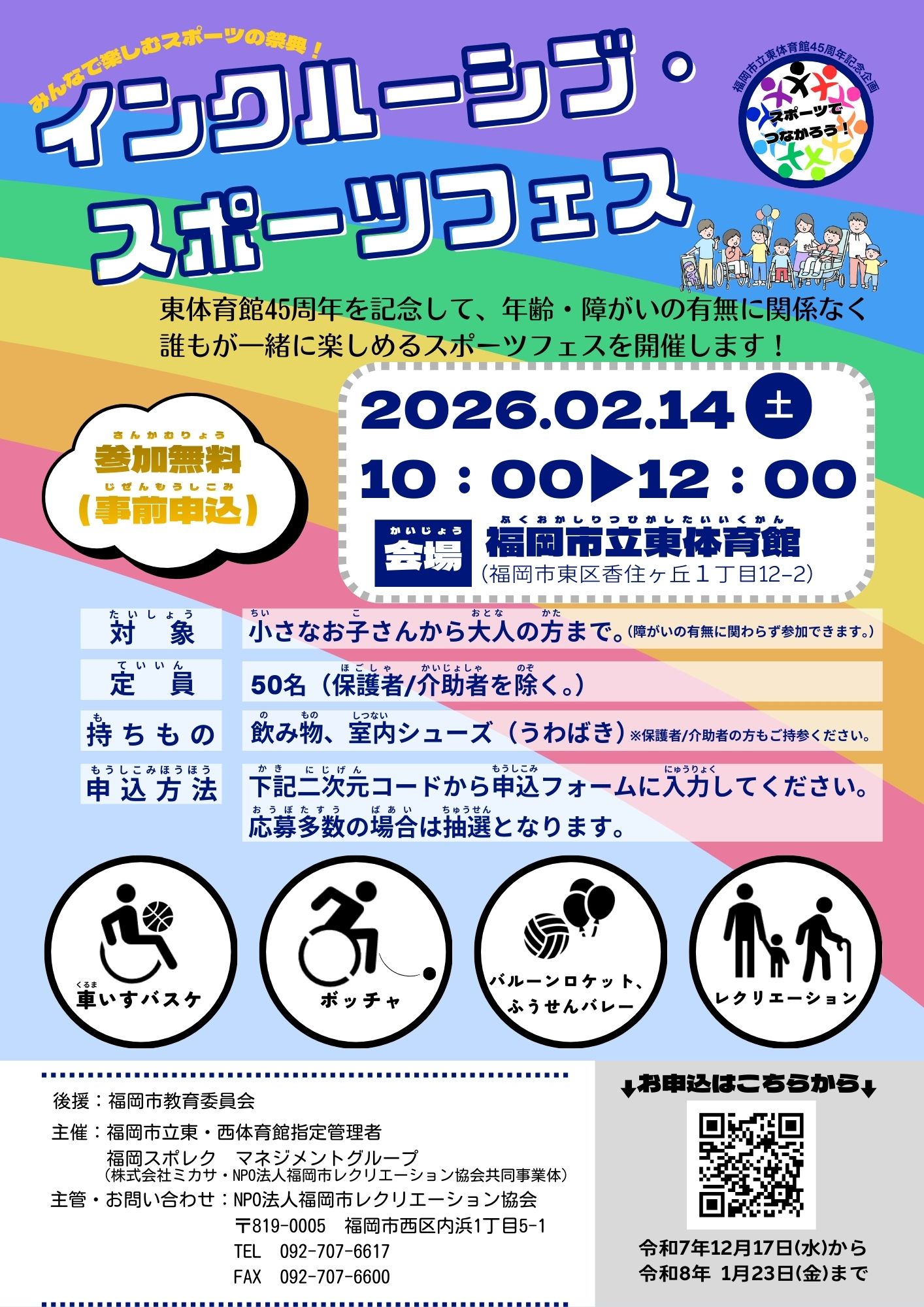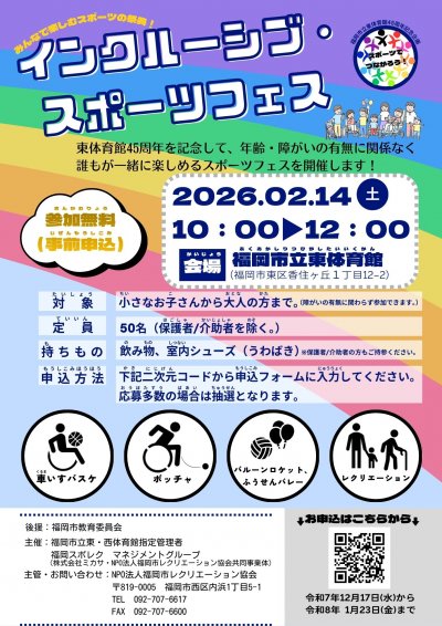 ≪参加者募集・事前申込要≫2月14日(土)東体育館開催 インクルーシブ・スポーツフェス体験会のお知らせ