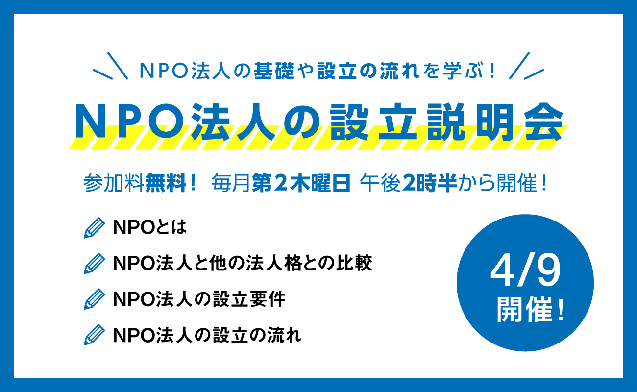 4月9日(木)開催!NPO法人の設立説明会