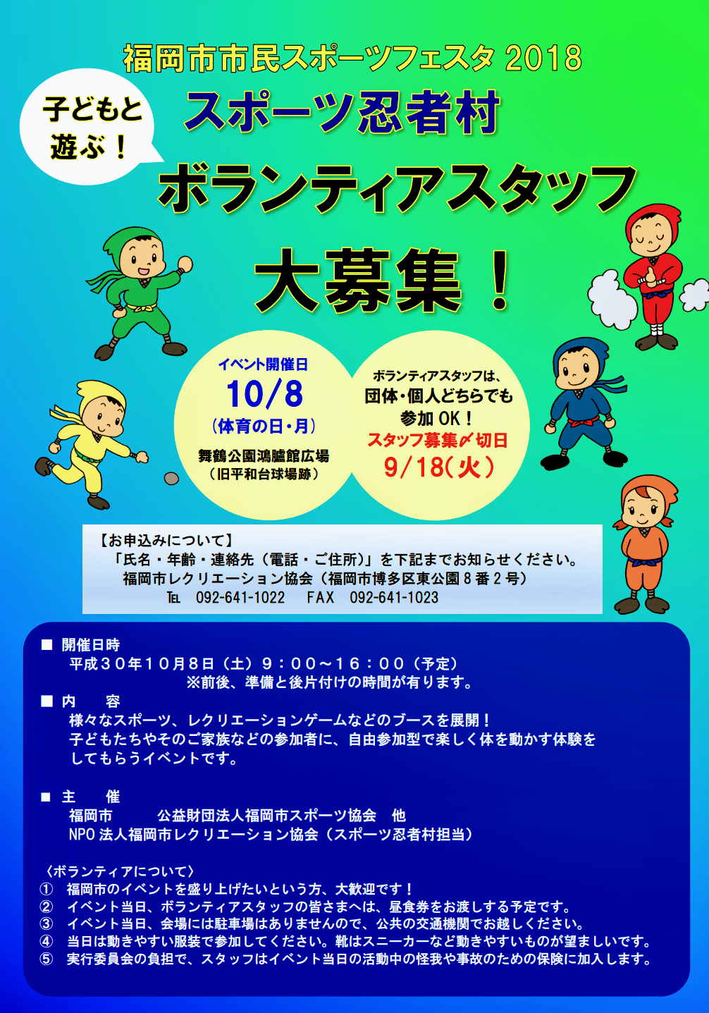 2018.09.06 ボランティア募集 by 特定非営利活動法人福岡市レクリエーション協会